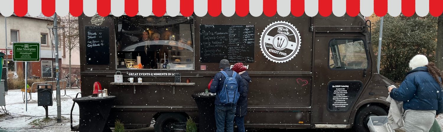 Wer Ihn kennt, liebt ihn … unseren Altstadtmarkt in Langen vor der Stadtkirche. Geprägt von netten, geselligen Menschen, Gemüse- und Blumenständen, Fleischer, Bäcker, Käsestand (der fehlt leider zur Zeit), etc. und den guten Rhöner Bratwürstchen. Schmackhafte Suppen, der mittlerweile legendäre „Altstadtmarkt-Burger“ und typische hessische Gerichte runden die Angebte ab. Der Treff am Samstag mit einem Gläschen was auch immer ist bei jedem Wetter perfekt.